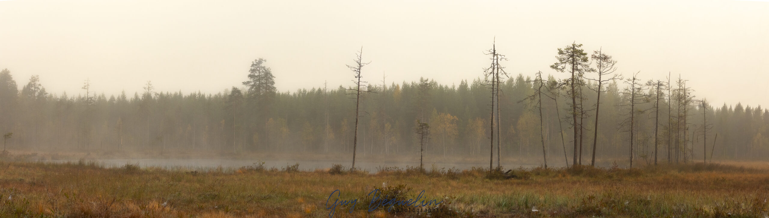 Pays magique et envoûtant où les rivières tumultueuses sont le paradis d’oiseaux qui se prennent pour des poissons; où les marais et les tourbières s’enveloppent de brumes mouvantes qui jouent à cache-cache avec le soleil; où les vastes forêts offrent gîte et couvert à de discrètes créatures à plumes et à poils et se parent à l’automne de couleurs flamboyantes; et où les aurores dansent au milieu des étoiles et s’évanouissent dans les lacs.